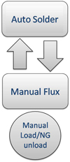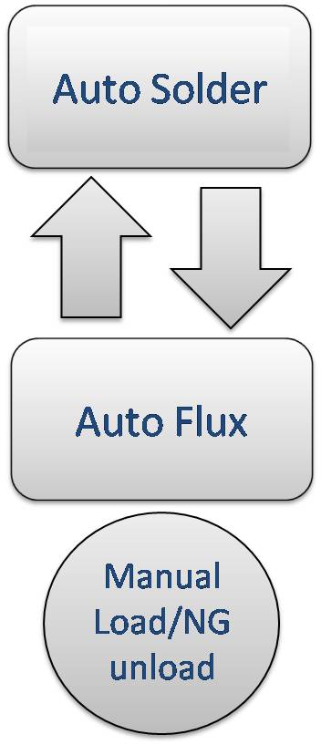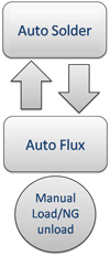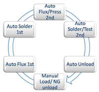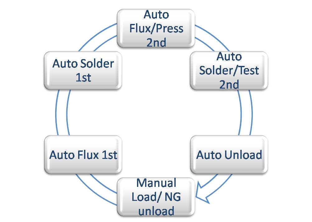 - Manual load, auto flux dipping, auto dip soldering and auto unloading.