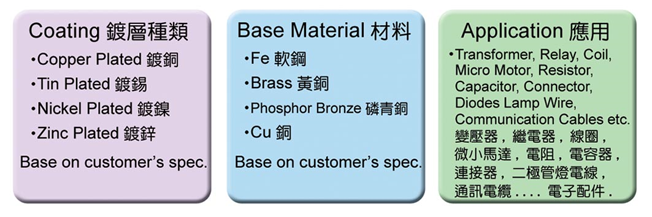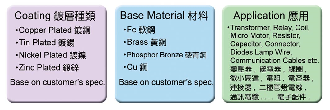 - Electro Tin Coated Copper/Nickel Covered Brass Wire 電鍍錫銅/鎳包黃銅線
